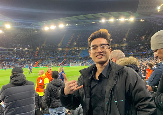 Sơn đi xem bóng đá ở Manchester mới đây. Ảnh: Nhân vật cung cấp
