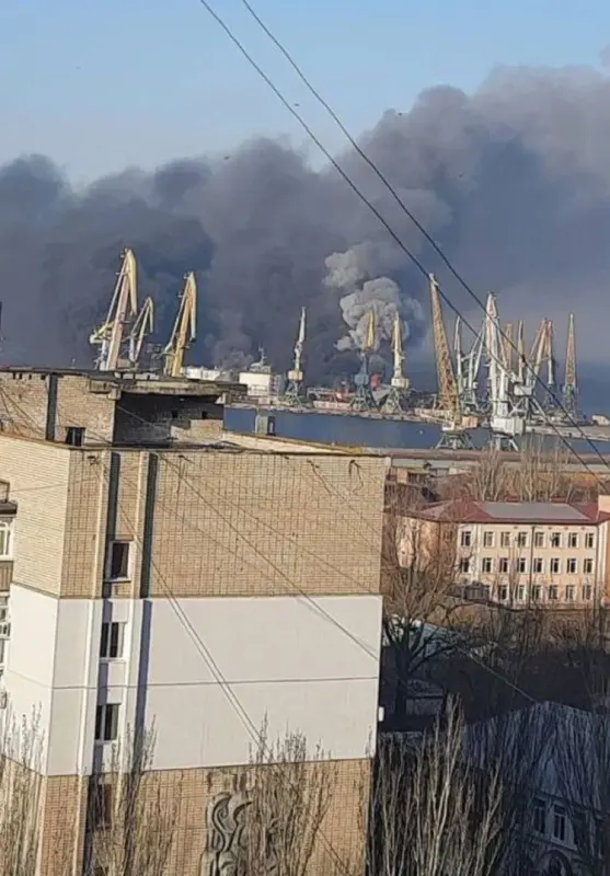 Tàu chiến Nga bị phá hủy ở cảng Berdyansk. Ảnh: Apostrophe