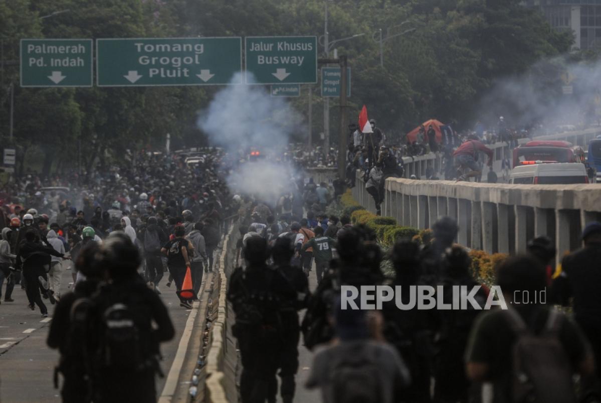 Tại tòa nhà Hạ viện Indonesia ở thủ đô Jakarta, mặc dù cảnh sát trưởng Quốc gia, Tướng Listyo Sigit Prabowo và ba Phó Chủ tịch Hạ viện Indonesia đã gặp hàng người người biểu tình để đối thoại. Tuy nhiên tình hình bắt đầu nóng lên khi một số người biểu tình Indonesia bắt đầu ném đá, gỗ, chai lọ vào các sĩ quan cảnh sát khiến lực lượng chức năng phải triển khai các biện pháp giải tán bằng vòi rồng và hơi cay. Đám đông sau đó trở nên hỗn loạn và đốt phá các trụ sở cảnh sát và lốp xe.