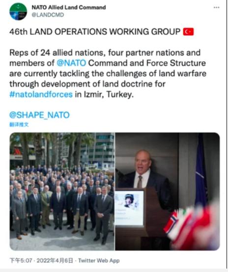 Ảnh chụp màn h́nh tin đăng trên tài khoản Twitter của Bộ Tư lệnh Lục quân NATO.