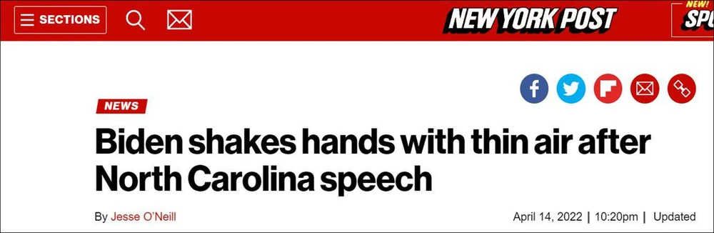 New York Post: Ông Biden bắt tay với thinh không sau bài phát biểu ở Bắc Carolina. Ảnh chụp màn hình