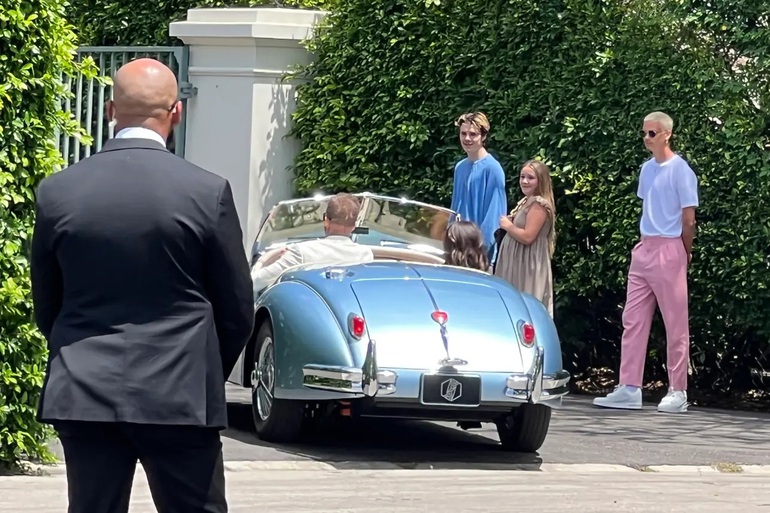 Bức ảnh chụp vợ chồng David Beckham ngồi bên trong chiếc xe hơi được chụp ở thời điểm cặp đôi đang chạy thử chiếc xe, trước khi trao tặng lại cho vợ chồng con trai cả Brooklyn. Món quà được trao tặng sau ngày diễn ra hôn lễ chính thức, khi những người thân còn lưu lại biệt thự của nhà Peltz để dự tiệc chia tay.