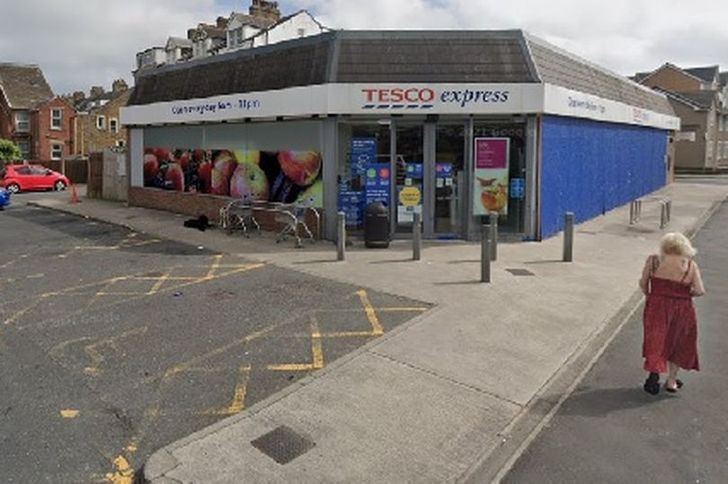 Người đàn ông đã chạy vào ngõ hẻm phía sau Tesco Express trên đường Heysham Road. Ảnh: Google Maps