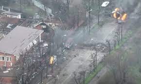 Video do Tiểu đoàn Azov công bố cho thấy các chiến binh Ukraine ở Mariupol phục kích đoàn xe chở binh sĩ Nga, khiến nhiều phương tiện bốc cháy.