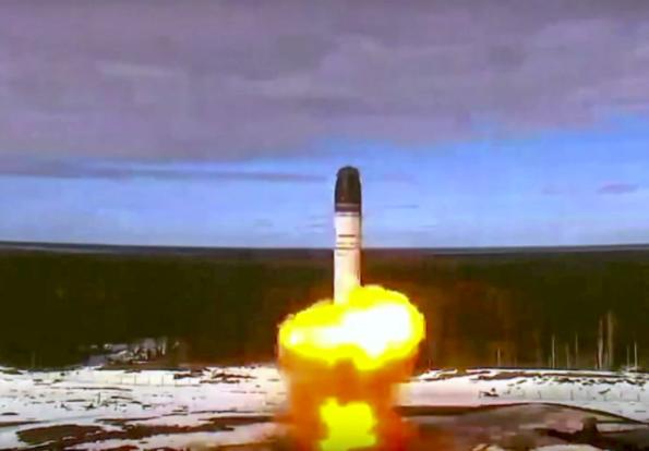 Tên lửa đạn đạo liên lục địa Sarmat được phóng thử nghiệm từ Plesetsk ở phía tây bắc nước Nga trong ngày 20/4. Ảnh: AP