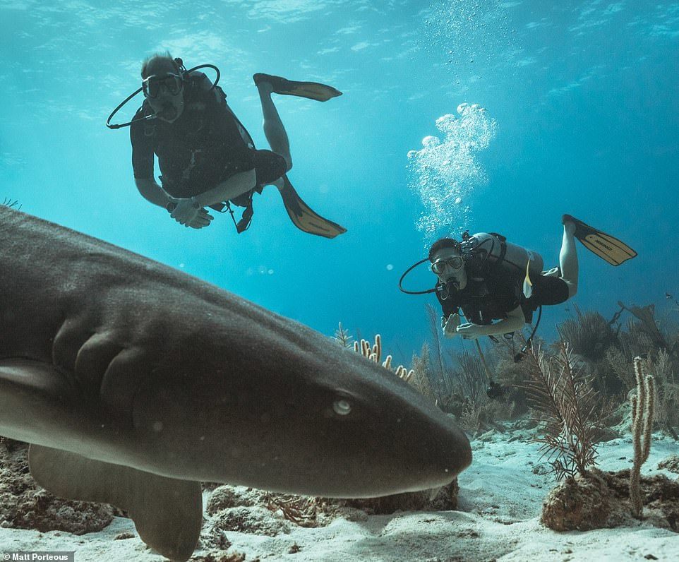Cảnh Công tước và nữ Công tước xứ Cambridge bơi với cá mập ngoài khơi Belize được nhiếp ảnh gia thuê riêng chụp.