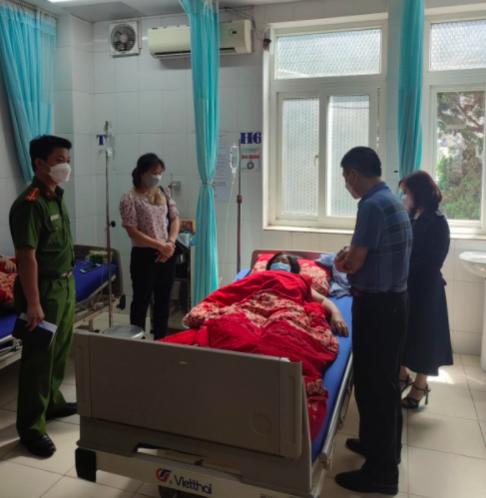 Đoàn liên ngành thăm hỏi các trường hợp phải điều trị tại bệnh viện sau khi ăn bánh.