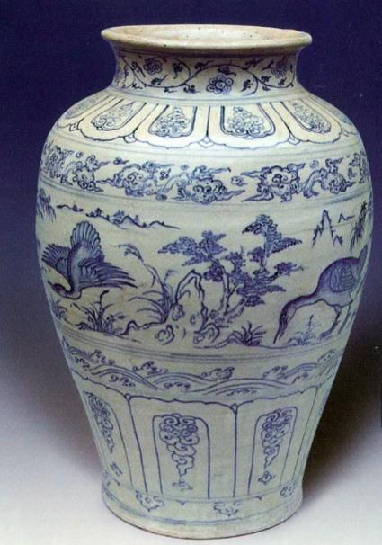 Trong đó có chiếc bình gốm hoa lam vẽ thiên nga là chiếc bình lớn nhất và nguyên vẹn nhất trong bộ sưu tập độc bản vớt lên từ con tàu cổ.
