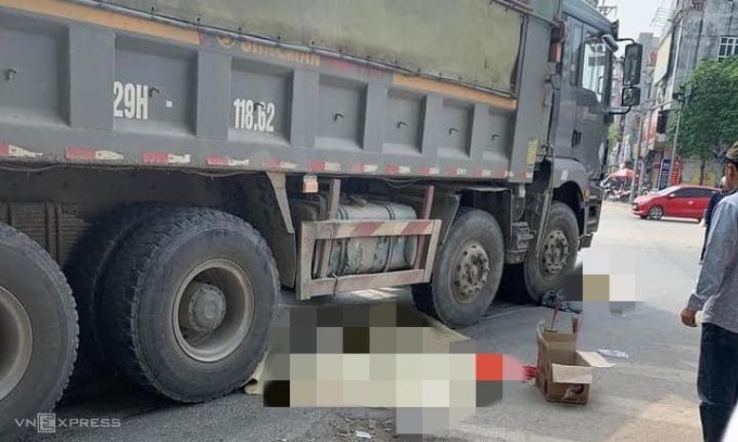 Chiều nay 5/5, chị Phùng Thị Thu Huyền lái xe máy chở hai con đi học thì va chạm với xe tải tại thị trấn Tây Đằng, huyện Ba Vì, khiến cả ba tử nạn.