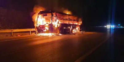 Đến 21h, đám cháy được dập tắt, nhưng xe khách bị cháy trơ khung, hư hỏng hoàn toàn, may mắn không thiệt hại về người.
