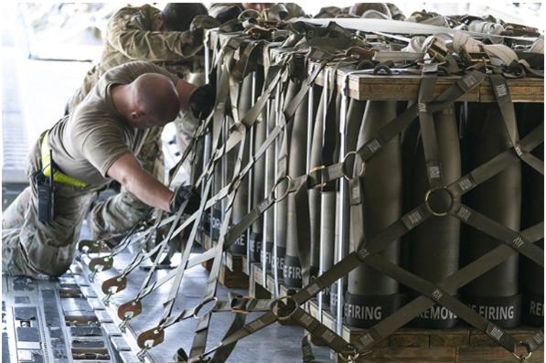 Lực lượng không quân đẩy hơn 3,6 tấn đạn pháo 155 mm lên máy bay chuyển đến Ukraine. Kể từ khi Nga tuyên bố "chiến dịch quân sự" chuyển sang giai đoạn mới, Lầu Năm Góc đã cam kết hỗ trợ an ninh hơn 4 tỷ USD cho Ukraine, với trọng tâm là pháo hạng nặng.