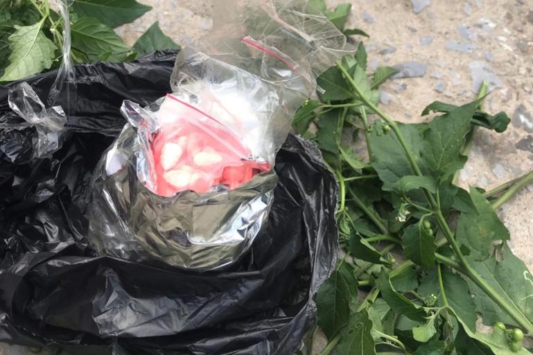 1.000 viên thuốc lắc được Toàn ngụy trang trong đám rau dại, bỏ vào giỏ xe đạp ung dung tới địa điểm giao hàng (Ảnh: T.H).