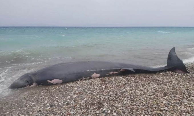 Con cá voi mõm khoằm Cuvier dài gần 5 m dạt vào bãi biển Kremasti ở Rhodes hôm 30/4. Các đội cứu hộ động vật biển có vú của tổ chức từ thiện ARION lập tức tới đây để đánh giá xác cá voi. Họ không tìm thấy vết thương ngoài nào trên cơ thể con vật ngoài mài mòn tự nhiên. Tuy nhiên, khi khám nghiệm, họ phát hiện những tổn thương trong bụng nó.