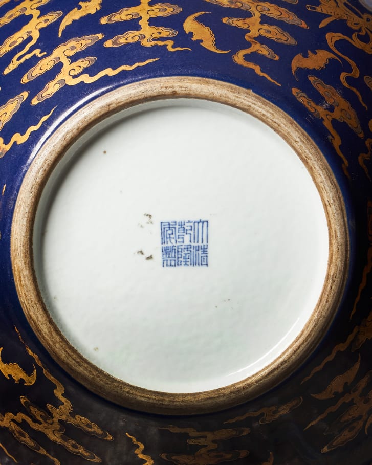 Phần đáy bình có ký hiệu đặc trưng của thời Càn Long (1736-1795). Ảnh: CNN