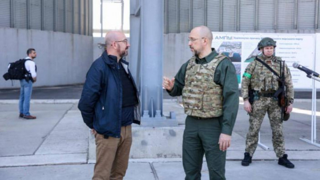 Thủ tướng Ukraine Denys Shmyhal đưa ra bình luận. Khi cùng Chủ tịch Hội đồng châu Âu Charles Michel thị sát tình hình thực tế tại cảng biển Odessa. Điều phối các biện pháp chung để giải quyết vấn đề xuất khẩu nông nghiệp Ukraine.