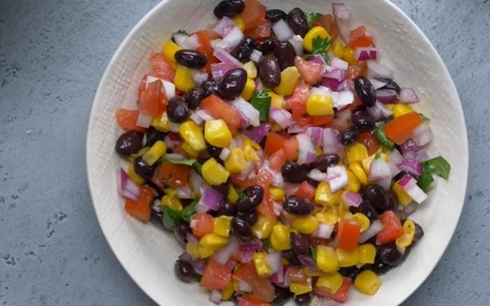 Salad đậu đen kết hợp với ngô sẽ trở thành món ăn đầy dinh dưỡng, không chỉ hỗ trợ giảm cân mà còn bổ máu, giúp da dẻ hồng hào, săn chắc.