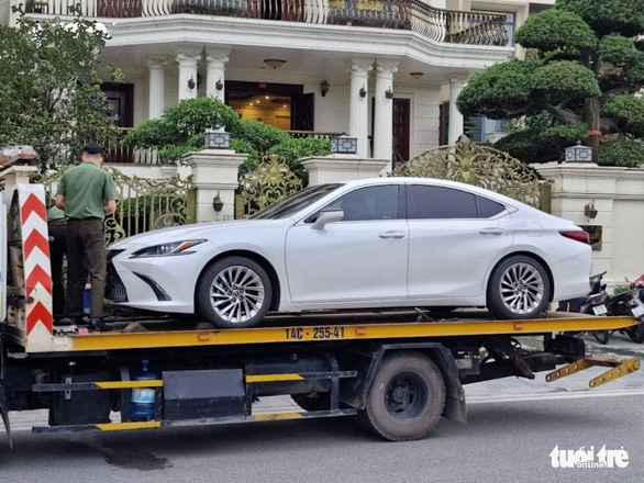 Cơ quan chức năng niêm phong tổng cộng 4 chiếc ôtô có giá trị ước tính khoảng 20 tỉ đồng tại nhà cựu chủ tịch UBND TP Hạ Long Phạm Hồng Hà - Ảnh: H.SAM