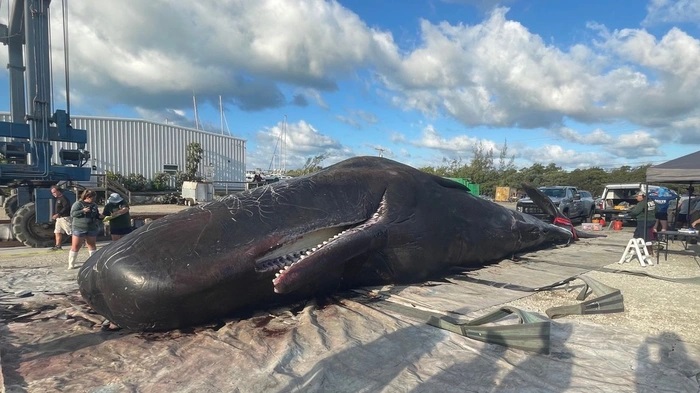Theo Viện Nghiên cứu Cá và Động vật hoang dã (FWC), con cá nhà táng đực dài 14,3 mét được tìm thấy mắc cạn ngoài khơi bờ biển Florida Keys, Mỹ.