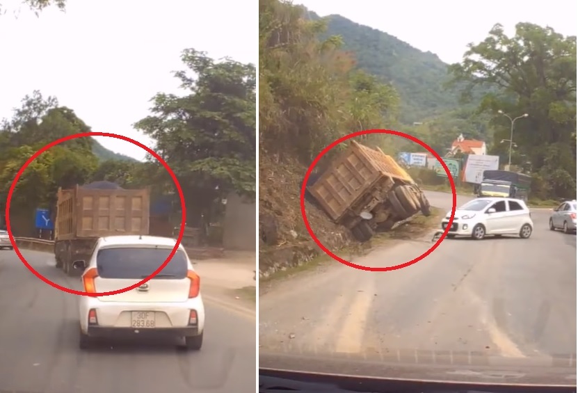 "May mà bạn xe máy chui xuống rãnh kịp. Mất phanh thôi. Chứ bạn tải ý đi chậm mà. Còn hơn là phang chết người, đánh lái tránh thương vong thế là tài già rồi".