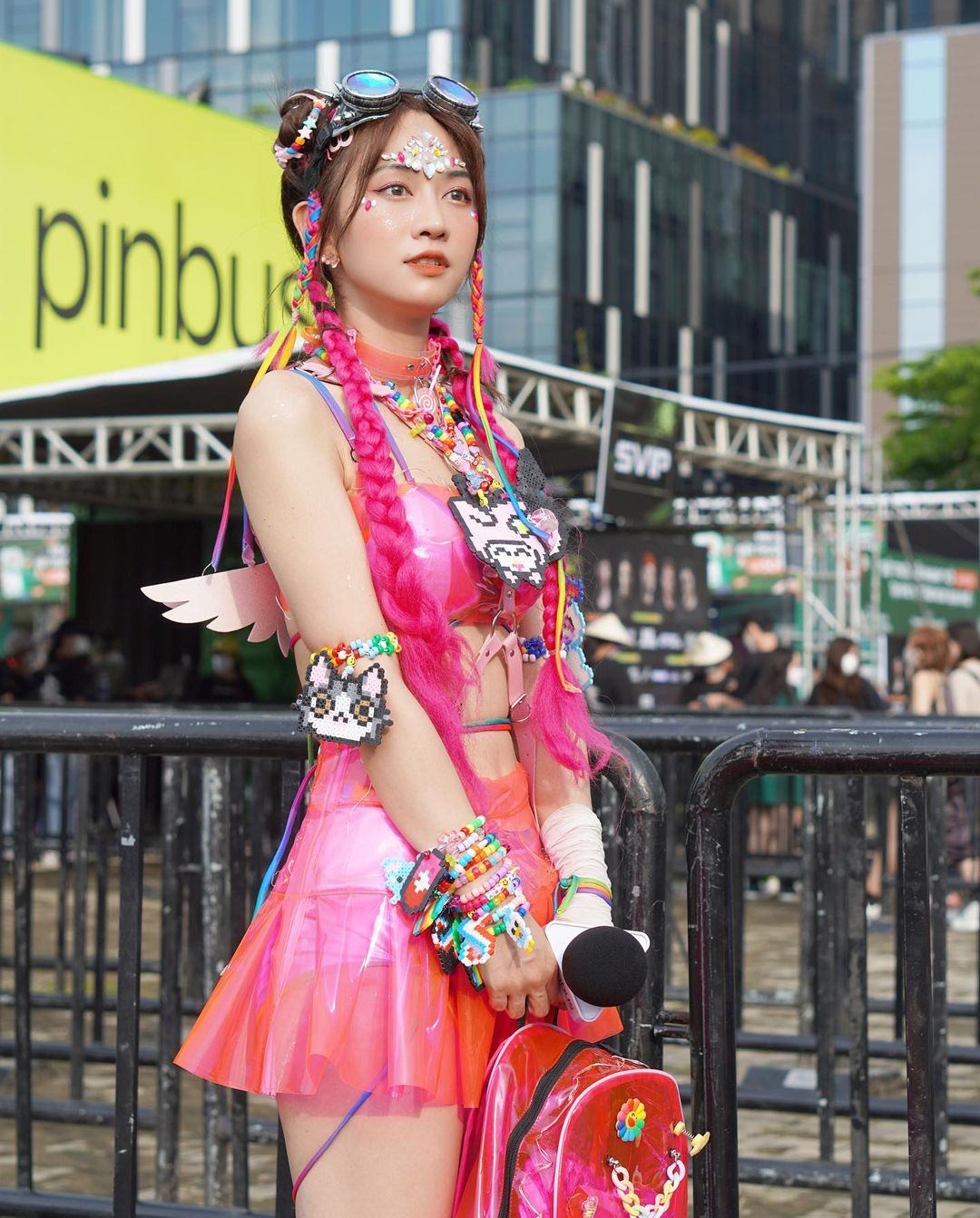 Lê Bống là một trong những hot girl được nhiều người quan tâm khi có 8,8 triệu người theo dõi trên Tik Tok. Mới đây, cô có đăng tải hình ảnh tham gia lễ hội âm nhạc thu hút sự chú ý. Trang phục của Lê Bống mang màu hồng ngọt ngào, chi tiết đến từng phụ kiện nhỏ.