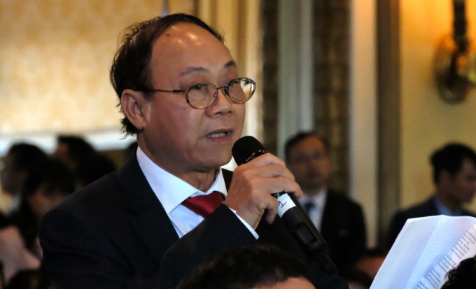 Ông Toàn Phương, một người Việt sống tại San Francisco, phát biểu tại cuộc gặp với Thủ tướng. Ảnh: Hoàng Thùy