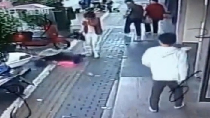 Theo như một đoạn phim do camera giám sát ghi lại vụ việc cho thấy hai người phụ nữ đang khoác tay nhau đi bộ trên một con phố nhiều hàng quán thì bất ngờ bị một khối bê tông rơi từ một tòa nhà cao tầng trúng đầu dẫn đến tử vong.