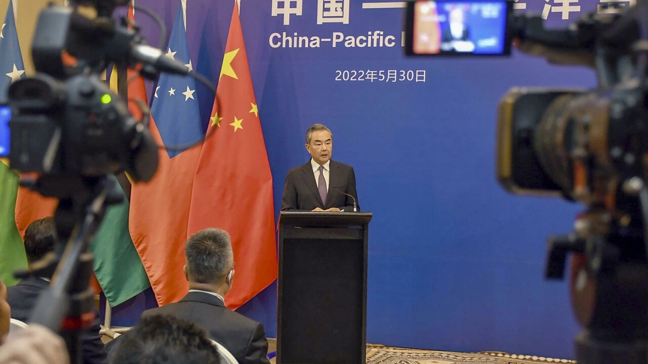 Ngoại trưởng Trung Quốc, Vương Nghị, trong cuộc họp báo tại Hội nghị các Ngoại trưởng của 10 quốc gia trong vùng Thái Bình Dương, ngày 30/05/2022, tại Suva, Fiji. Ảnh do chính phủ Fiji cung cấp. AP - HOGP