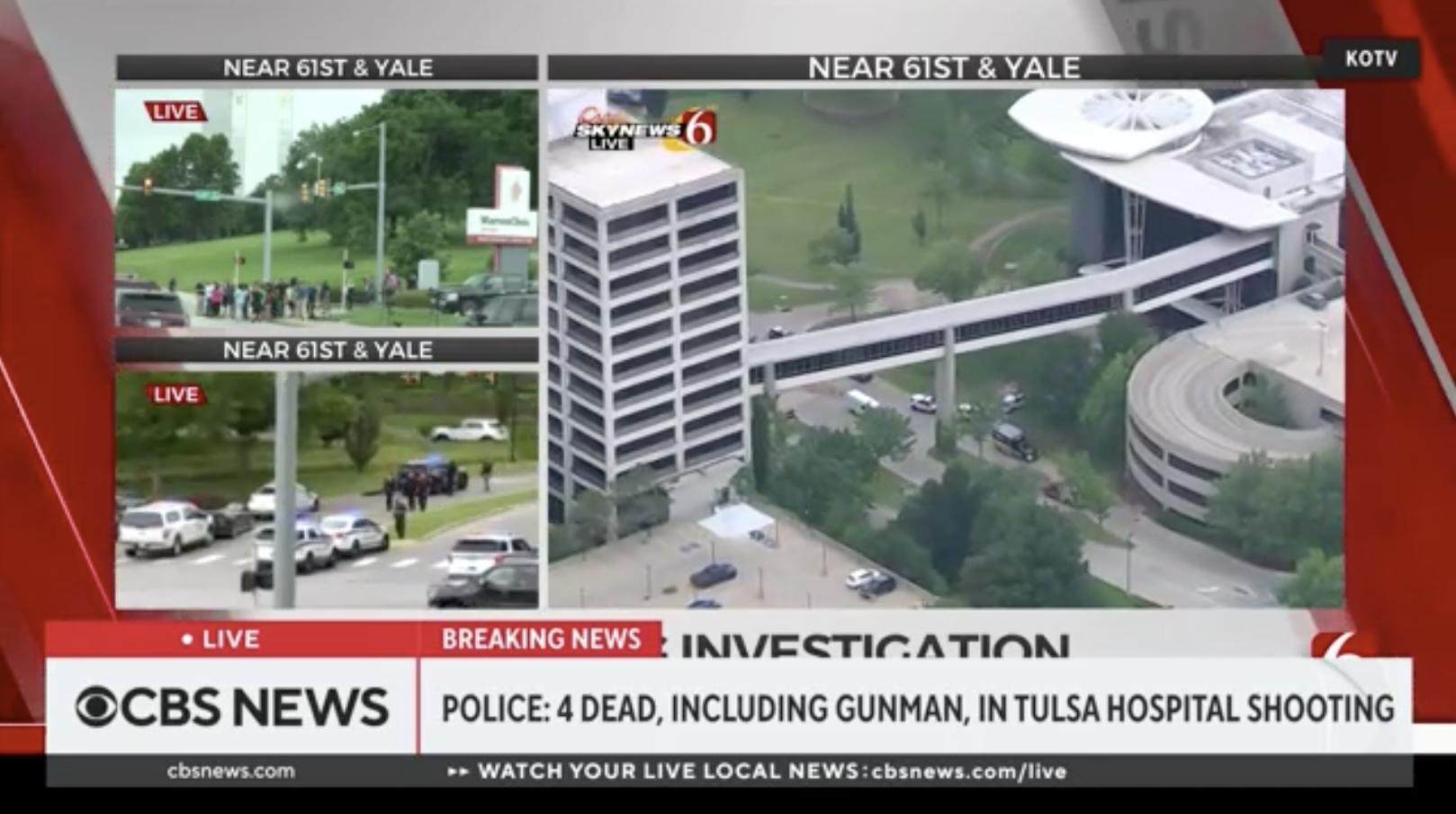 Bốn người thiệt mạng. Bao gồm cả nghi phạm, và nhiều người khác bị thương trong một vụ nổ súng vừa xảy ra tại khuôn viên một bệnh viện ở Tulsa, bang Okalahoma, Mỹ. Phía cảnh sát vẫn đang làm việc để dọn dẹp khuôn viên bệnh viện St.Francis. Vụ nổ súng xảy ra lúc gần 6h tối, giờ địa phương (6h sáng nay giờ Việt Nam).