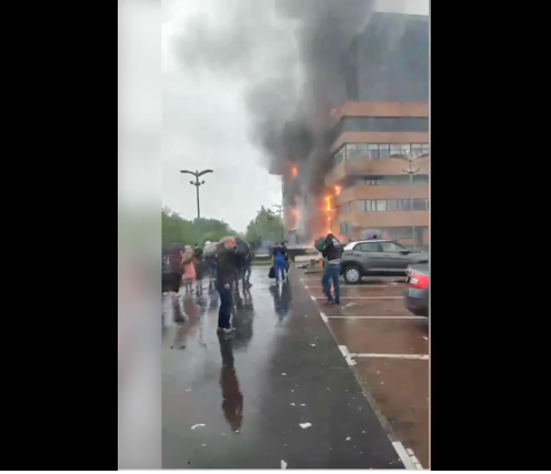 Một video ghi từ hiện trường cho thấy, khói dày đặc tỏa ra từ mặt tiền tòa nhà. Nhà chức trách đã phong tỏa giao thông ở con đường liền kề.