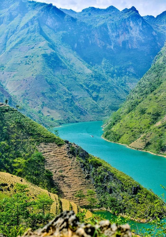 Khung cảnh nơi đây được hòa quyện giữa nét mềm mại dịu dàng của dòng sông và sự hùng vĩ, hiểm trở của vách đá tai mèo đã tạo nên điểm đến hấp dẫn du khách trong hành trình khám phá Hà Giang.