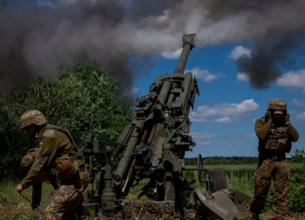 Quân đội Ukraine bắn một quả đạn từ lựu pháo M777 gần chiến tuyến ở vùng Donetsk ngày 6/6. Ảnh Reuters