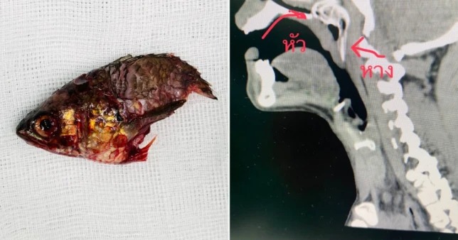 Bệnh nhân được giấu tên sau đó được những người xung quanh đưa thẳng đến bệnh viện khi có dấu hiệu khó thở, thở hổn hển và cố gắng giữ cổ họng để con cá không chui vào sâu hơn.