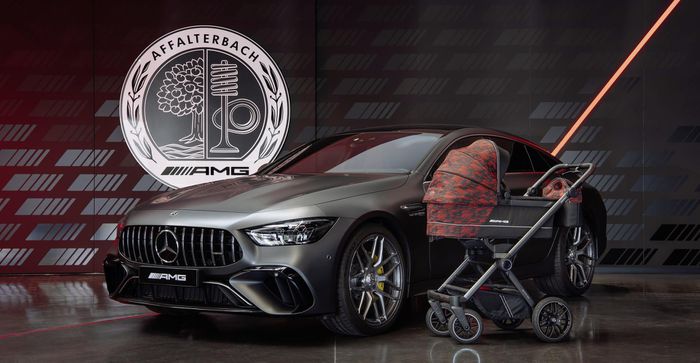 Ảnh 1: Bộ đôi siêu xe đẩy em bé và siêu xe Mercedes AMG GT (Ảnh: Carscoops)