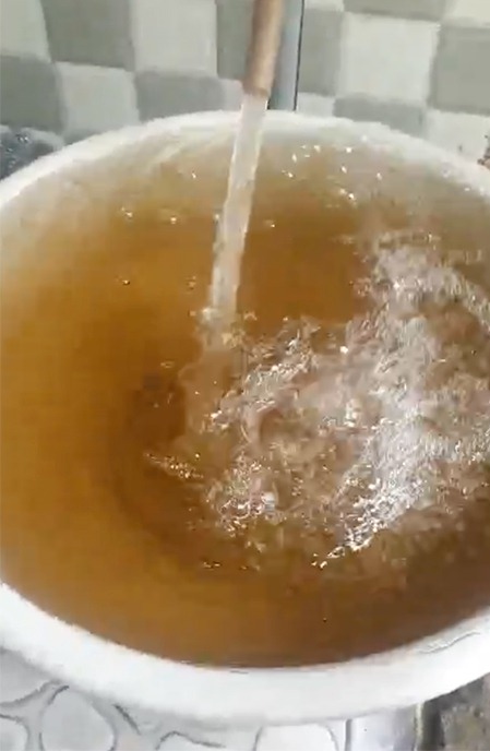"Màu vàng như nước chè. Tôi không dám rửa tay và giặt đồ vì sợ ngứa, nhiễm bệnh", anh Sơn nói. Theo anh, tình trạng trên ghi nhận nhiều nhất vào buổi sáng; trưa và chiều màu có giảm song vẫn có màu đục.