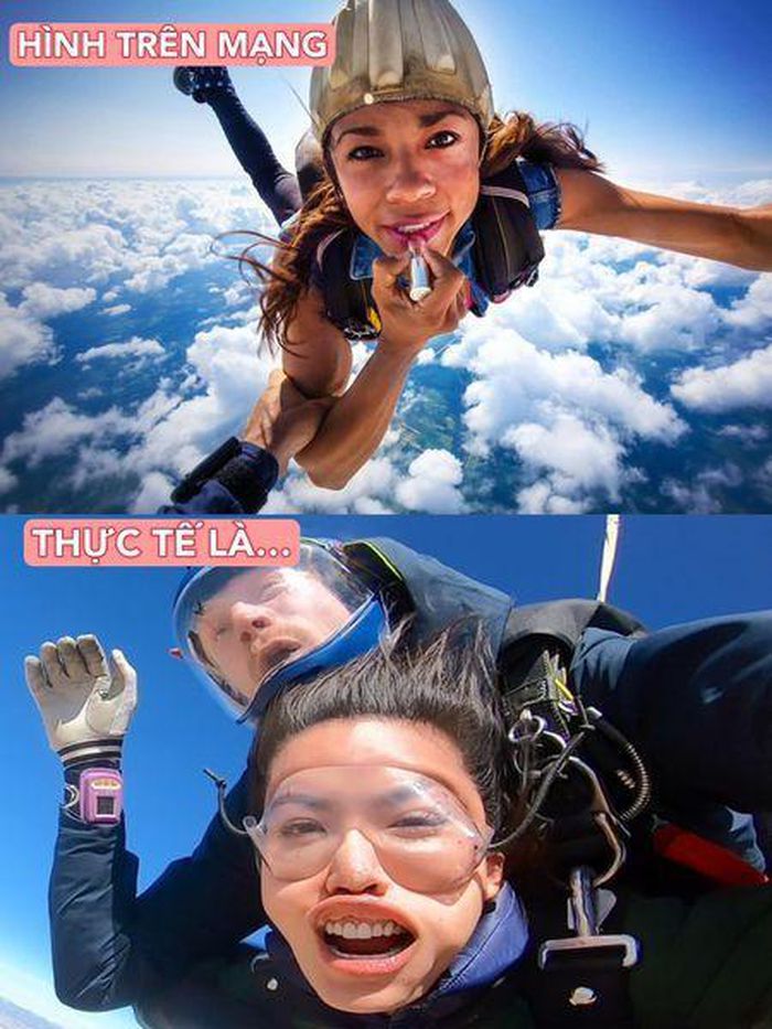 Old  Default Minh Tú thử sức với môn nhảy dù, loạt ảnh 'phiêu' trên trời làm fan cười ngất