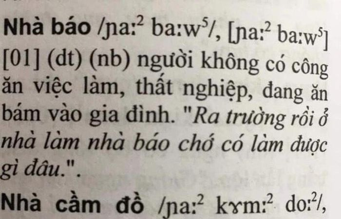 "Ra trường rồi ở nhà làm nhà báo chớ có làm được gì đâu"- cuốn từ điển dẫn chứng.