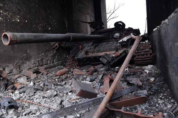 Xe quân sự bị phá hủy ở Severodonetsk, miền đông Ukraine, hôm 11/6. Ảnh: AFP.