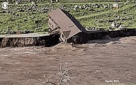 Cây cầu trong công viên Yellowstone bị lũ cuốn sập. Ảnh: AP