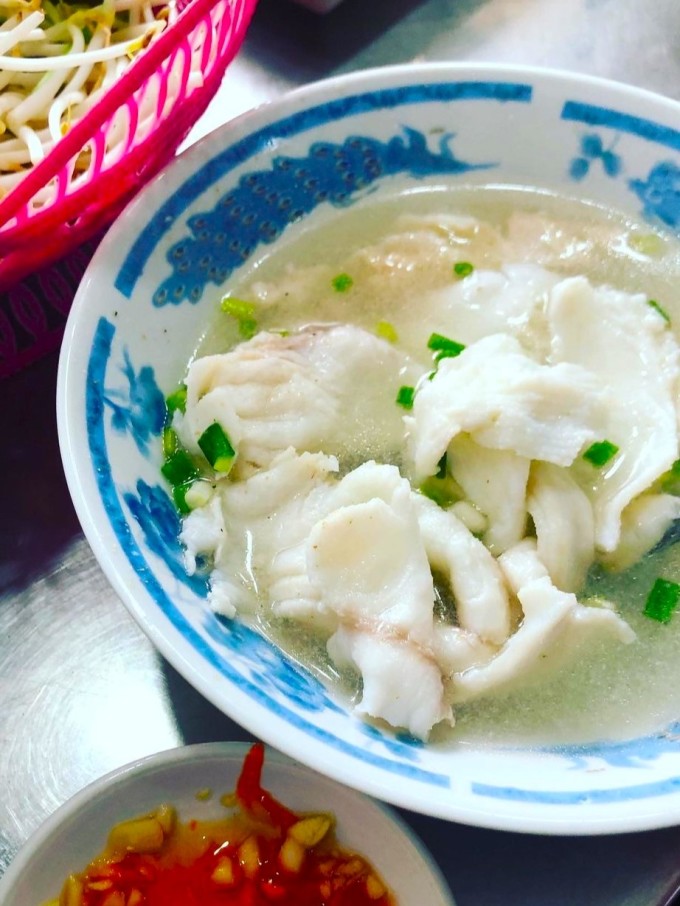 Tương tự hủ tiếu hồ, hủ tiếu cá cũng là món quen thuộc với người Hoa ở Sài Gòn, món ăn có sợi mềm, mỏng, lớn gấp đôi bánh phở. Topping ăn kèm duy nhất là thịt cá lóc phi lê được tẩm ướp gia vị, chần chín và thêm chút hành lá dậy mùi thơm. Nước dùng có màu hơi đục, nấu từ cá và xương ống heo có độ ngọt thanh, đậm đà. Tuy nhiên, giá hủ tiếu cá được nhận xét khá cao so với mặt bằng chung, một phần ăn có thể hơn 100.000 đồng/tô. Ảnh: Instagram ayonoih