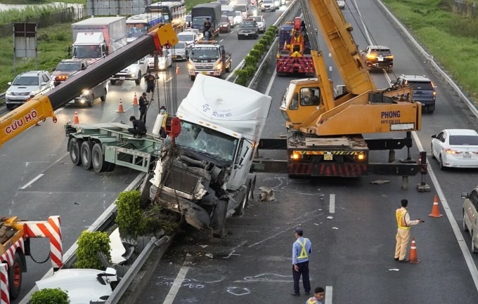 Cú tông mạnh khiến thùng xe bị văng xuống đường, kính lái bị vỡ. Phần đầu ôtô lấn sang làn đường ngược lại. Nhiều mảnh vỡ văng xuống đường. Tài xế không bị thương. Đang giờ cao điểm nên tai nạn gây kẹt xe hàng dài. Nhiều xe phải mất hàng giờ mới nhích được quãng đường vài trăm mét.