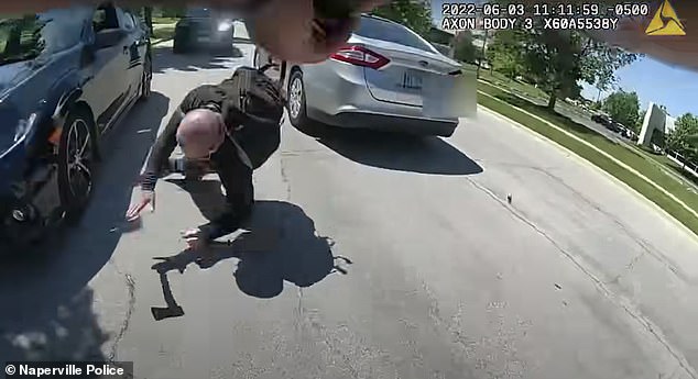 Theo như có một chiếc xe màu xám không liên quan chạy ngược chiều liền dừng lại ngay bên cạnh xe cảnh sát, theo Sở cảnh sát Naperville, ngoại ô thành phố Chicago trong đoạn video quay tại hiện trường cho thấy khoảnh khắc một người đàn ông bước xuống trên chiếc màu xám, cầm rìu lao thẳng vào một sĩ quan cảnh sát.