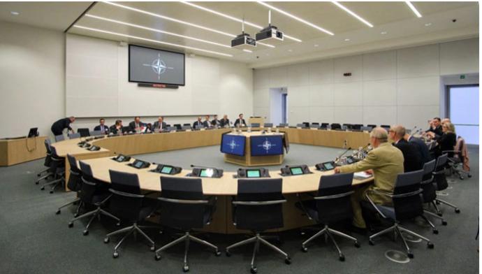 Quang cảnh cuộc đàm phán giữa các bên hôm 20/6. Ảnh: NATO.
