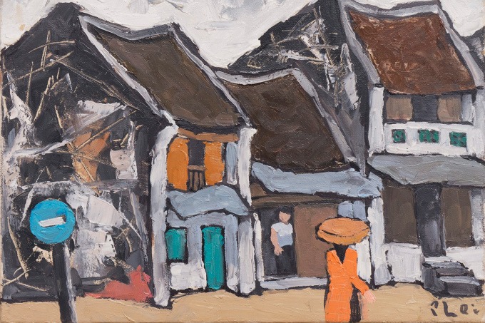 Một tác phẩm Bùi Xuân Phái được trưng bày trong triển lãm. Ảnh: Lý Đợi