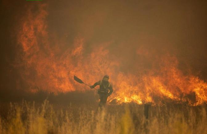 Một lính cứu đang dập trận cháy rừng ở Sierra de la Culebra ở tỉnh Zamora, Tây Ban Nha hôm 18/6 (Ảnh: AP).