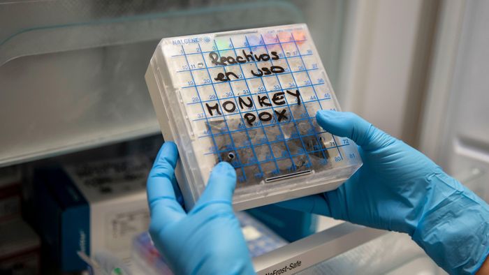 Các mẫu xét nghiệm đậu mùa khỉ tại Bệnh viện La Paz, Madrid, Tây Ban Nha. Ảnh: Pablo Blazquez Dominguez.
