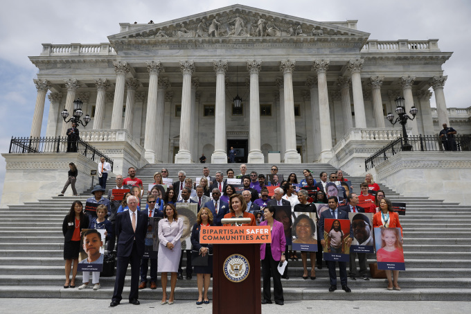 "Dự luật này bao gồm các bước tiến mạnh mẽ để cứu mạng mọi người, không chỉ khỏi các vụ xả súng hàng loạt kinh hoàng mà còn khỏi các vụ tấn công hàng ngày của tội phạm bạo lực súng đạn, hành vi tự sát hay sự cố thương tâm", Chủ tịch Hạ viện Nancy Pelosi phát biểu khi tranh luận về dự luật kiểm soát súng đạn.