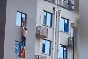 Old  Default Vô tình lao ra ngoài cửa sổ khi đi xuống cầu thang tầng 6, người đàn ông bị treo lơ lửng