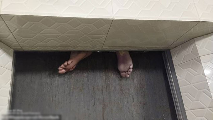 Đôi chân bị mắc kẹt của người đàn ông trong thang máy. Ảnh: Newsflash