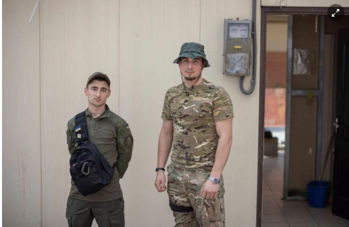 Danielo Oleksauk, một người lính trở về từ Sievierodonetsk, chụp ảnh cùng bạn mình. Ảnh: Reuters.
