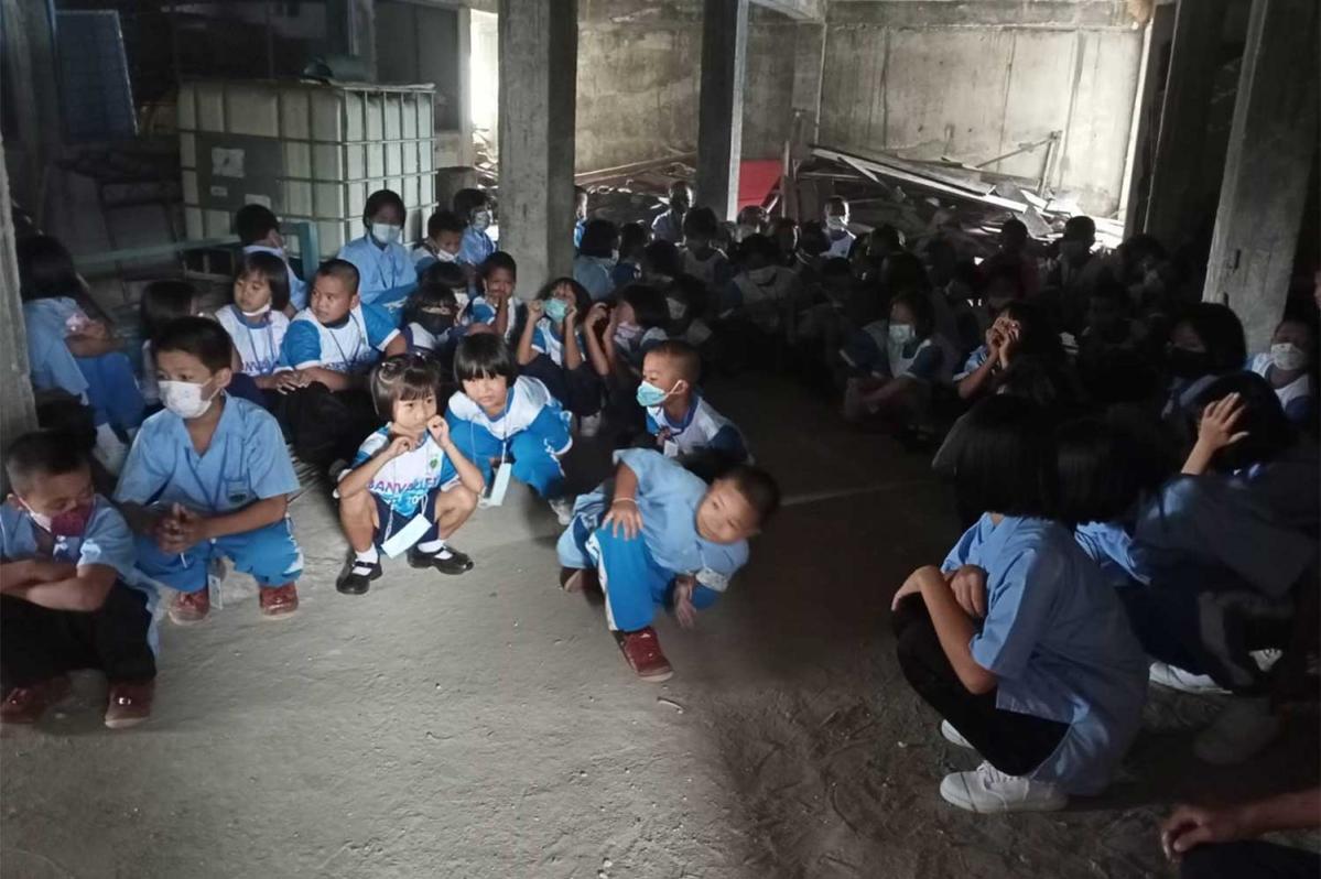 Học sinh 1 trường địa phương phải sơ tán khi máy bay bay ngang qua khu vực trường học - Ảnh: Assawin Pinitwong